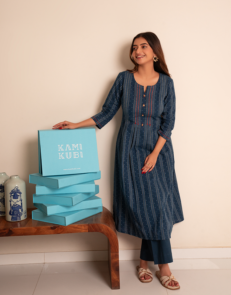 A-Line kurta highlighted with the Contrast colour hand mirrors