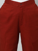 Upgrade your wardrobe with our Rust Ankle Length Cotton Linen Pant. Made from a comfortable blend of cotton and linen, this ankle-length pant offers both style and comfort. The plain belt in the front adds a touch of sophistication while the rust color makes it a unique piece in your collection.