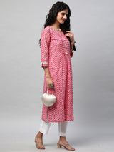 Straight fit kurta in Chevron printed cotton with gathers in front