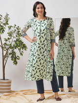 Straight fit shoulder princess kurta with piping between the seams and placket.