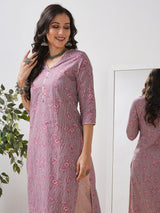 Straight kurta set with piping detailing on neck, sleeves and side slits paired with pant.
