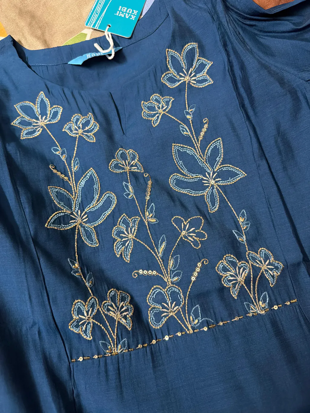 Pocketed A line kurta in woven cotton fabric with hand embroidery